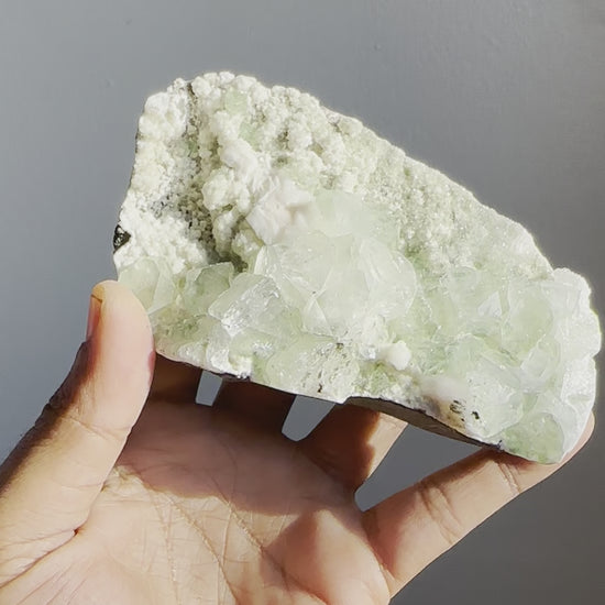 Green Apophyllite with Stilbite on Chalcedony